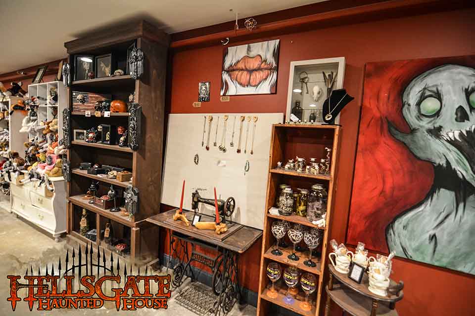Besides the HellsGate and Zombie Army products you'd expect, the HellsGate Gift Shop is home to over a dozen local artists! Part gift shop, part dark art gallery, you can find anything from your HellsGate souvenir t-shirt to your very own evil doll collection! Featuring the original creations of: